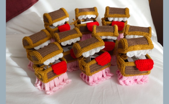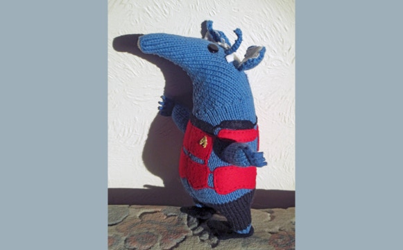This is a gallery of some of the items I have made. Not all are knitted, some are crocheted. There are some Science Fiction soft toys I made for my Husband, we are both lifelong fans of the genre. There are also a couple of pictures of “The Luggage”, these were created in crochet and were a one off. I made them, with full permission, to raise funds in memory of Sir Terry Pratchett. They were auctioned at Armadacon in 2015 and the money raised went to Alzheimers Research and The Orangutan Foundation UK.